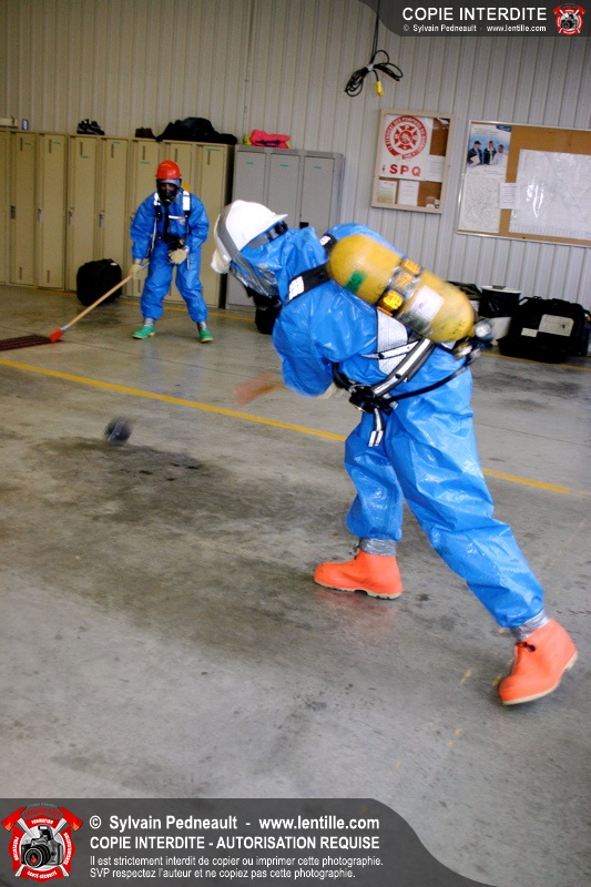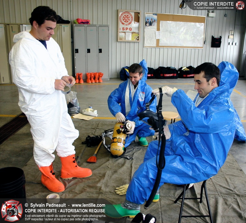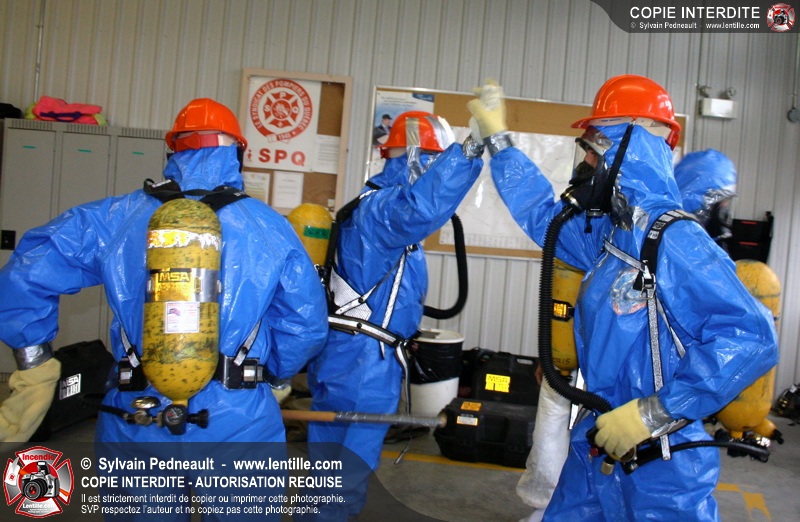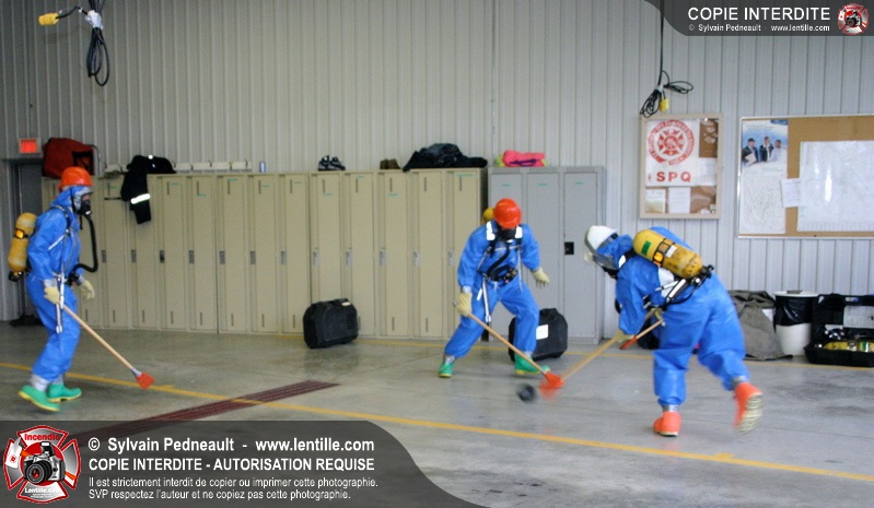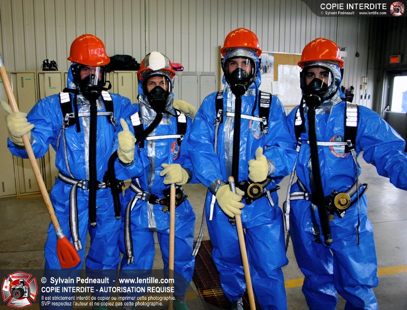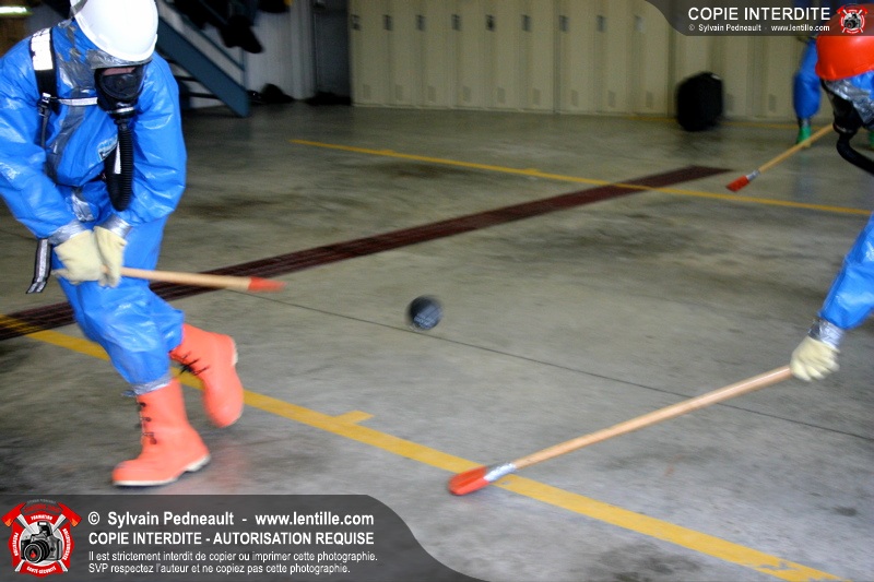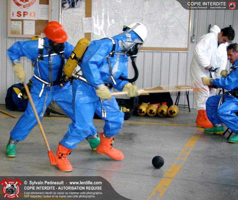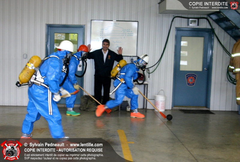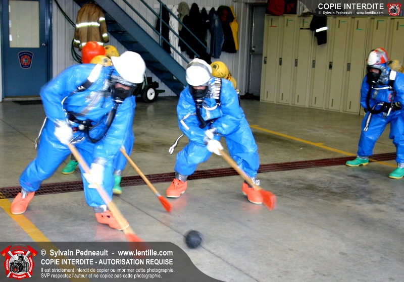 Comment joindre l'utile à l'agréable! Le CFR de Saint-Hyacinthe organisait aujourd'hui un match de hockey bien spécial: nos pompiers s'affrontaient vêtus de l'habit de protection haz-mat code B complet et réglementaire avec ARA.