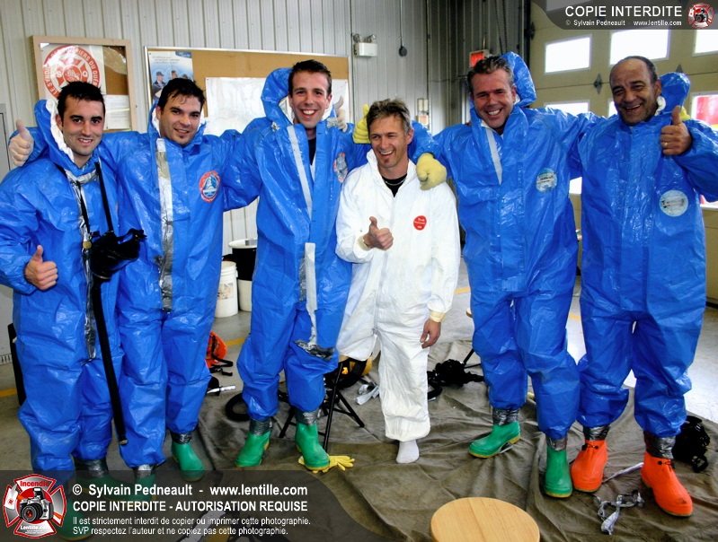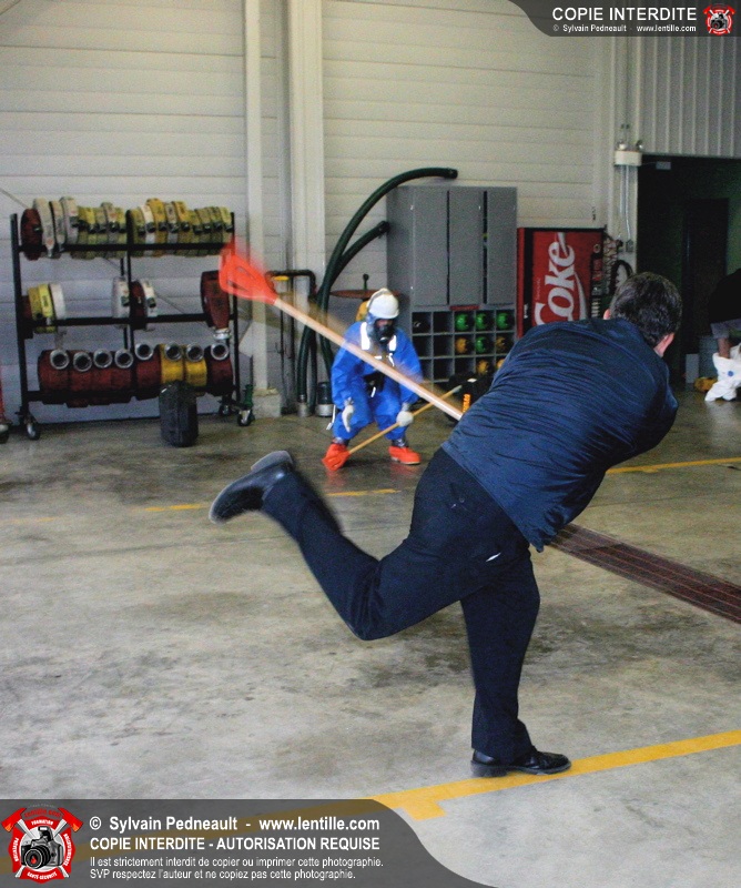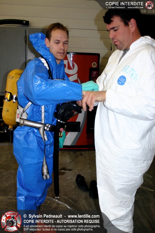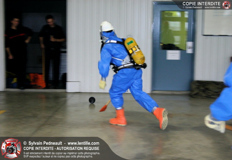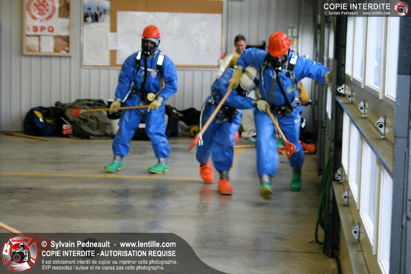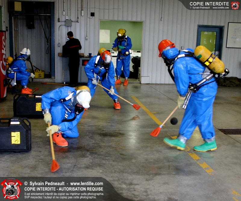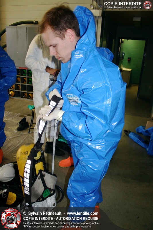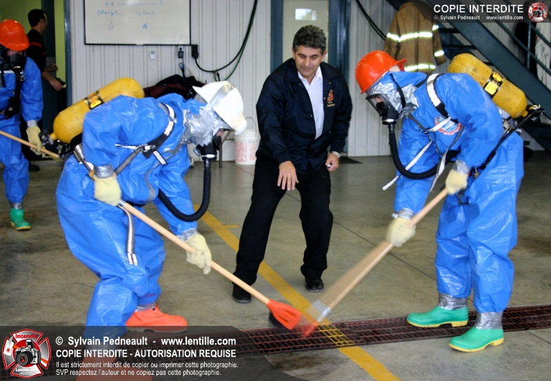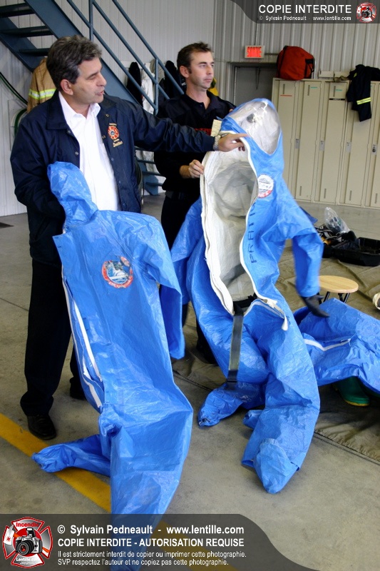 Comment joindre l'utile à l'agréable! Le CFR de Saint-Hyacinthe organisait aujourd'hui un match de hockey bien spécial: nos pompiers s'affrontaient vêtus de l'habit de protection haz-mat code B complet et réglementaire avec ARA.