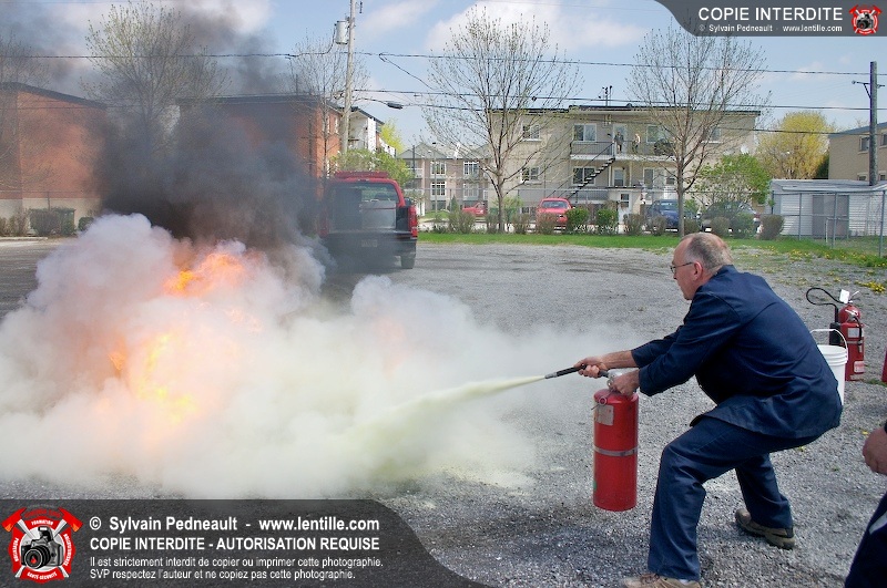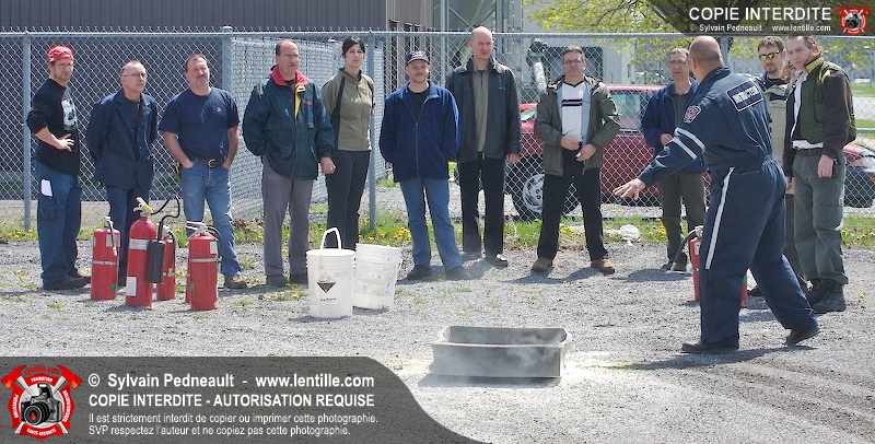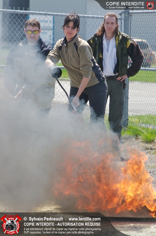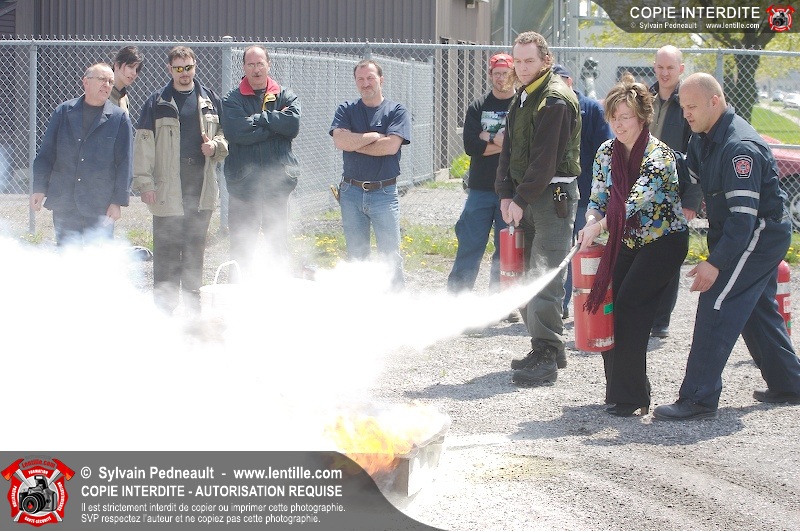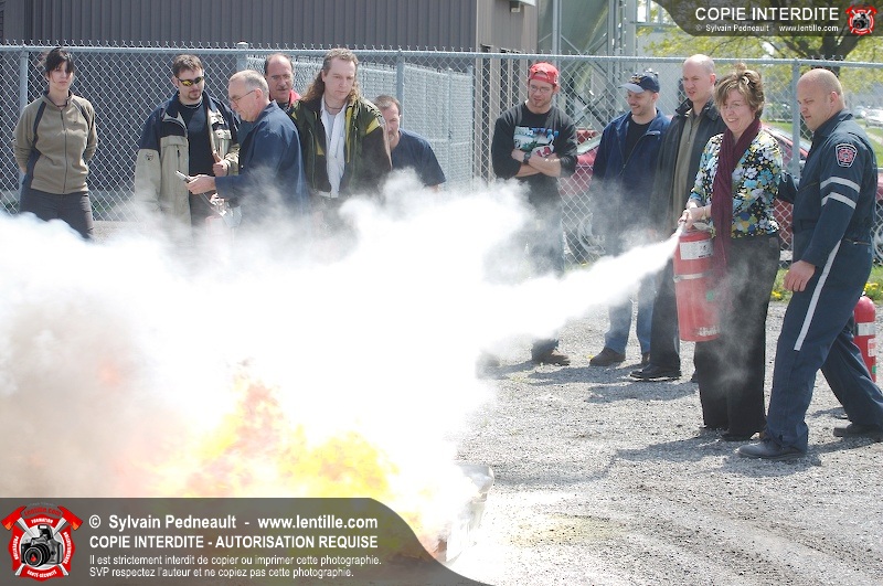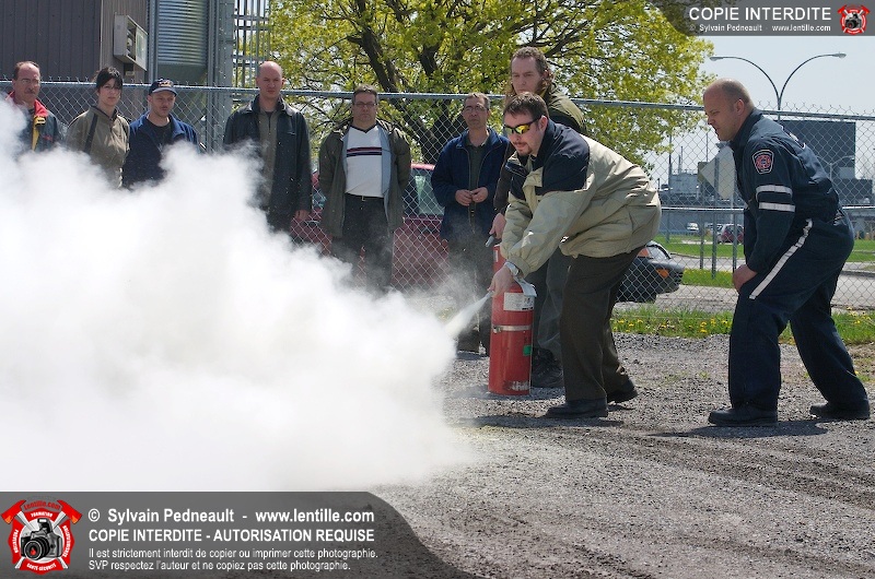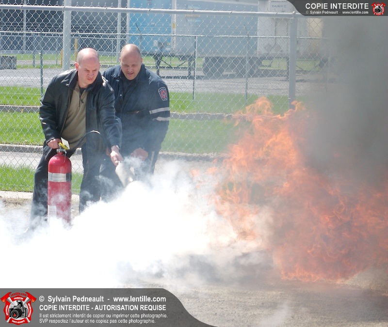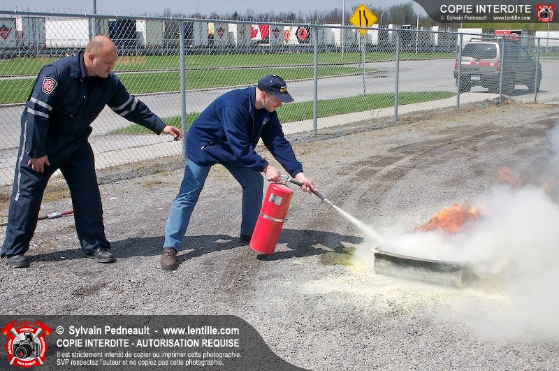 Des employés de l'entreprise CDMV ont participé à une pratique d'extincteurs portatifs avec le Service de sécurité incendie de Saint-Hyacinthe.