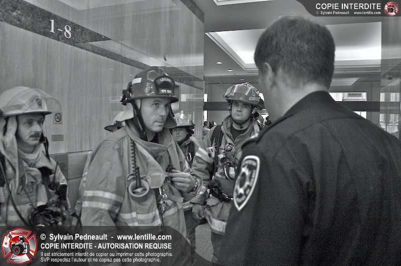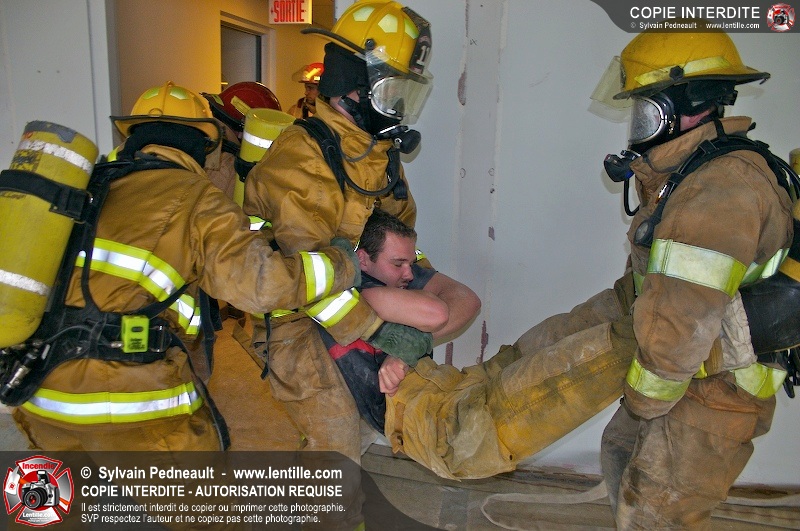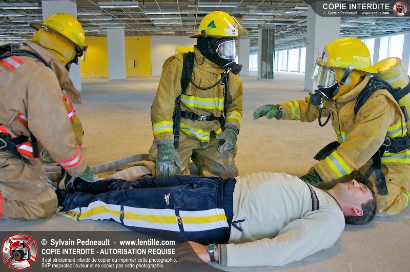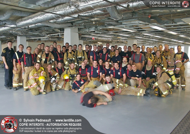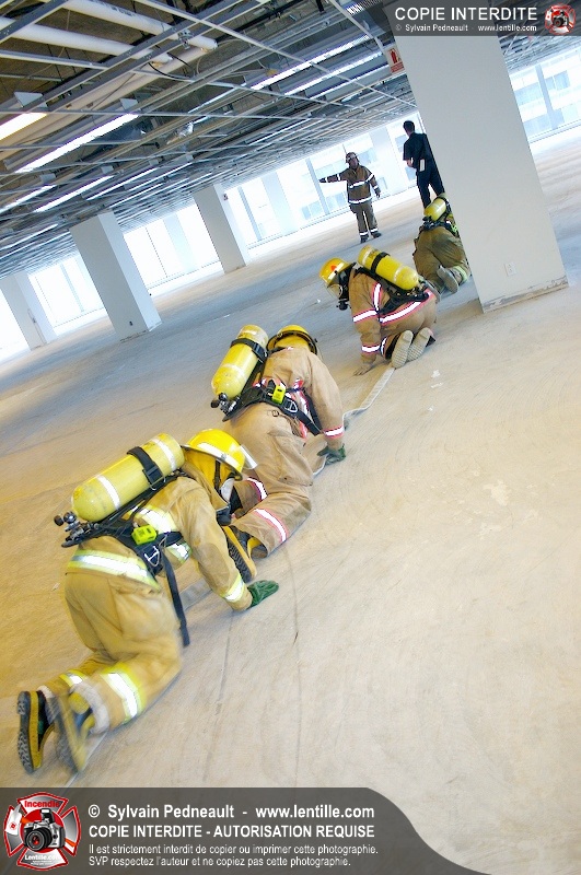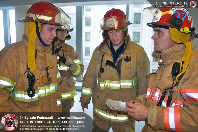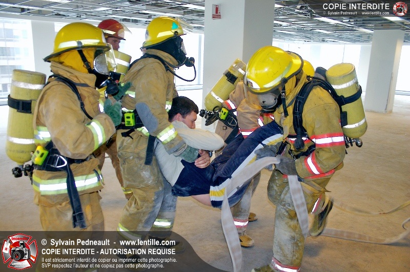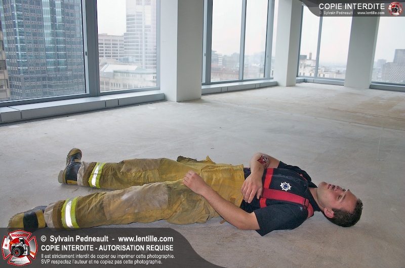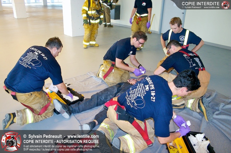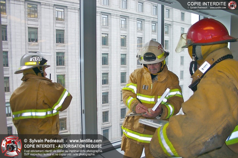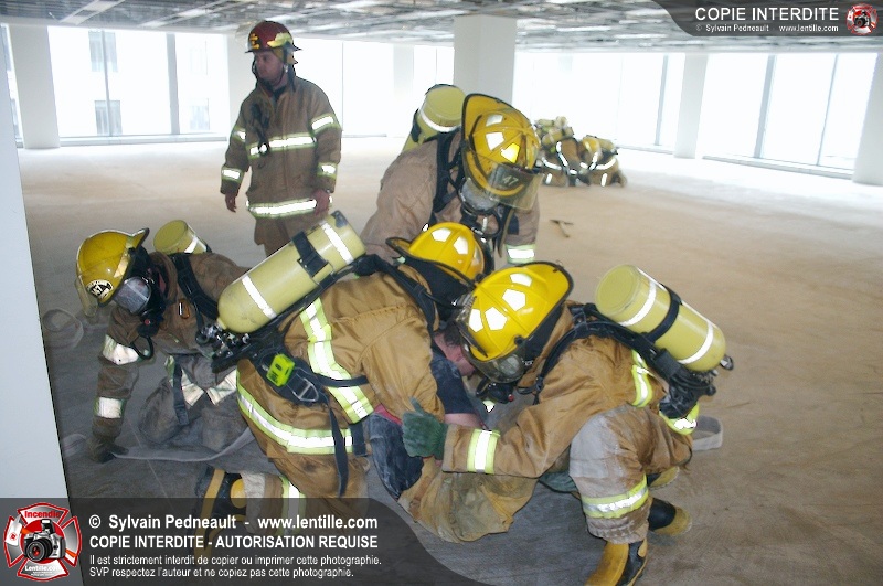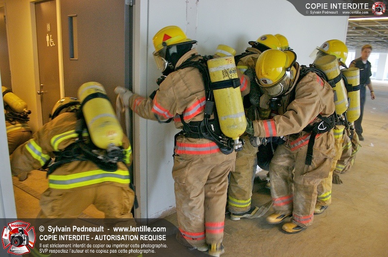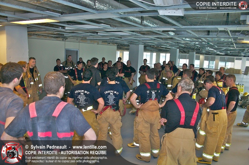Une cinquantaine de pompiers de différents services incendie ont participé à Montréal à une simulation d'intervention de grande envergure en BGH, dans le cadre de leur évaluation finale pour le module 18.