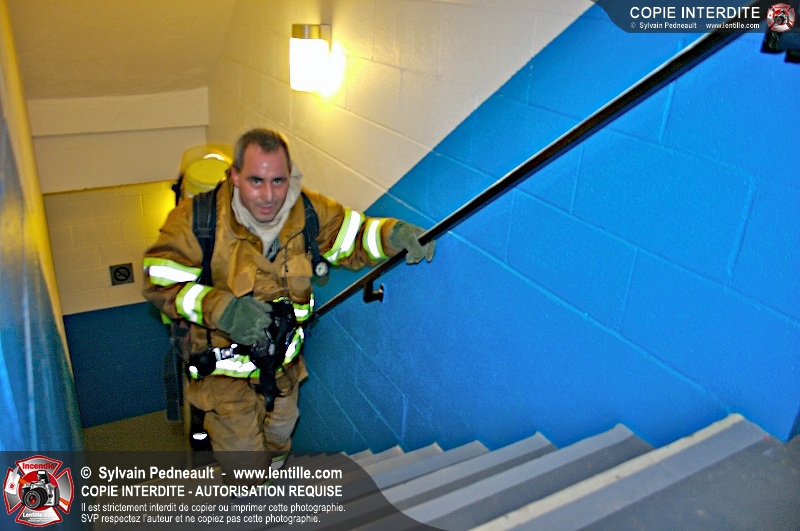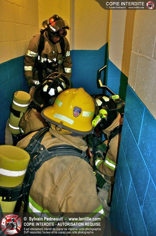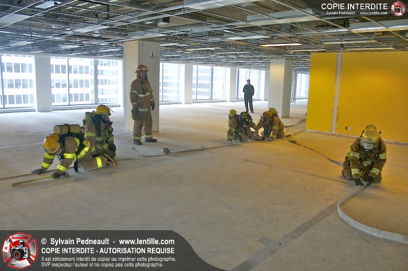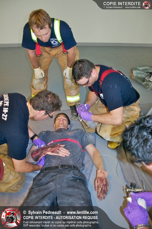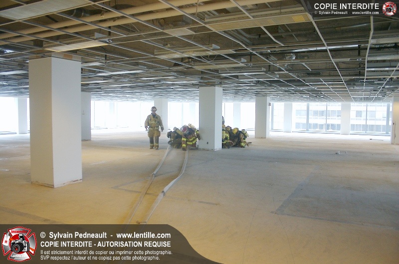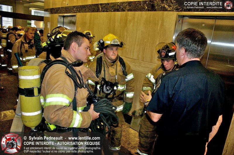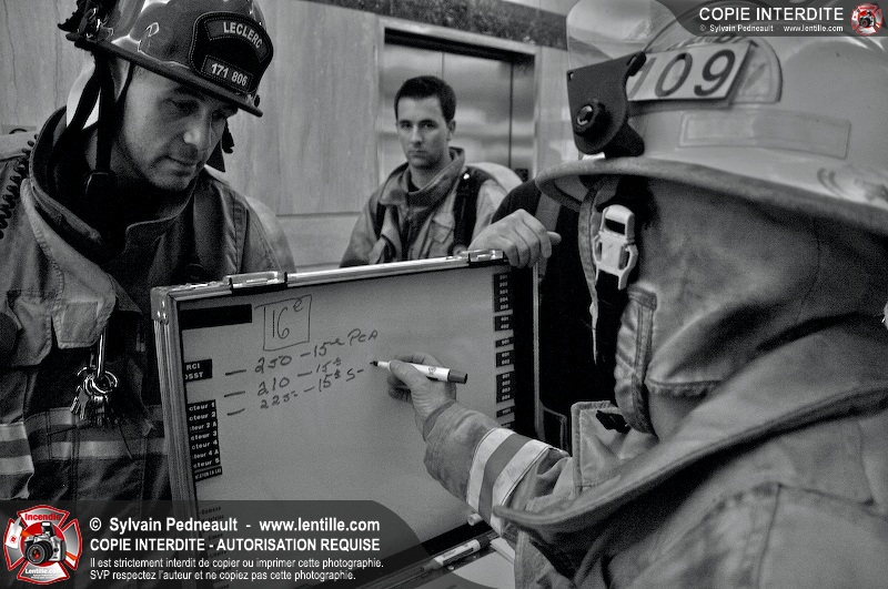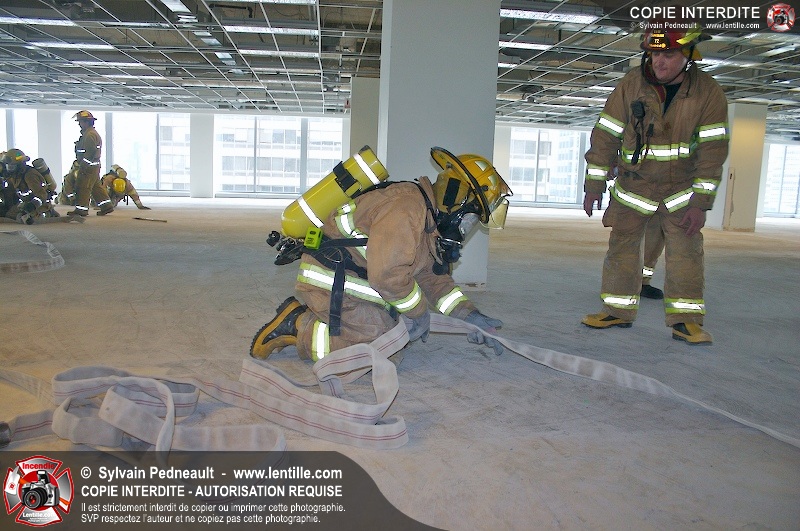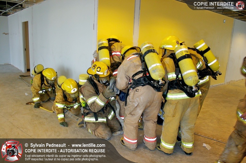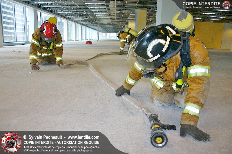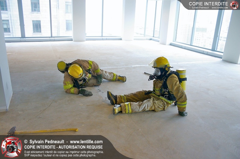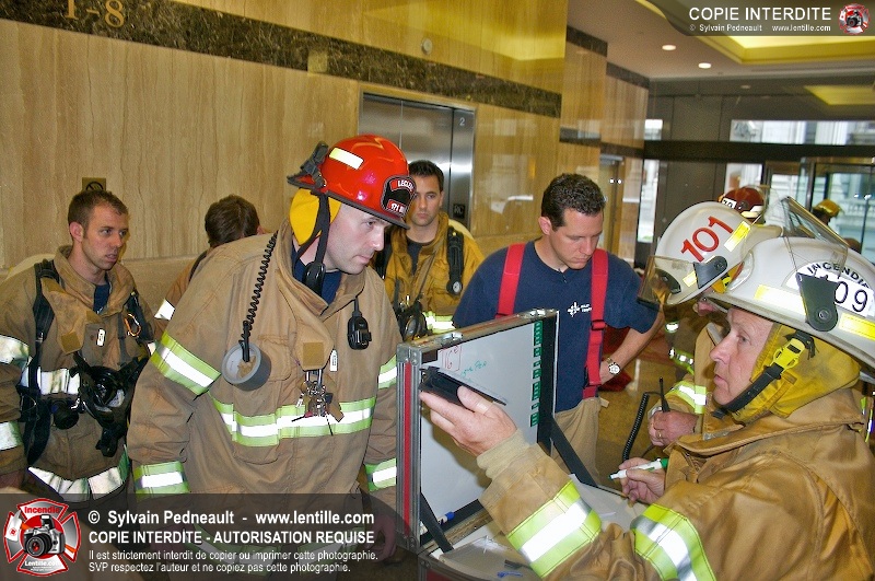 Une cinquantaine de pompiers de différents services incendie ont participé à Montréal à une simulation d'intervention de grande envergure en BGH, dans le cadre de leur évaluation finale pour le module 18.