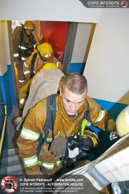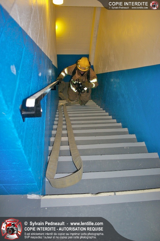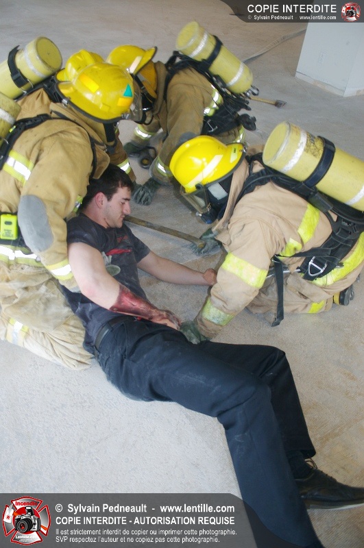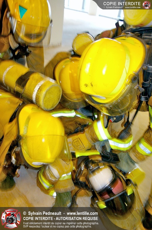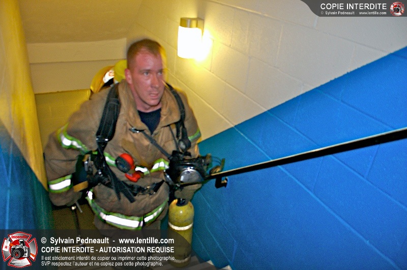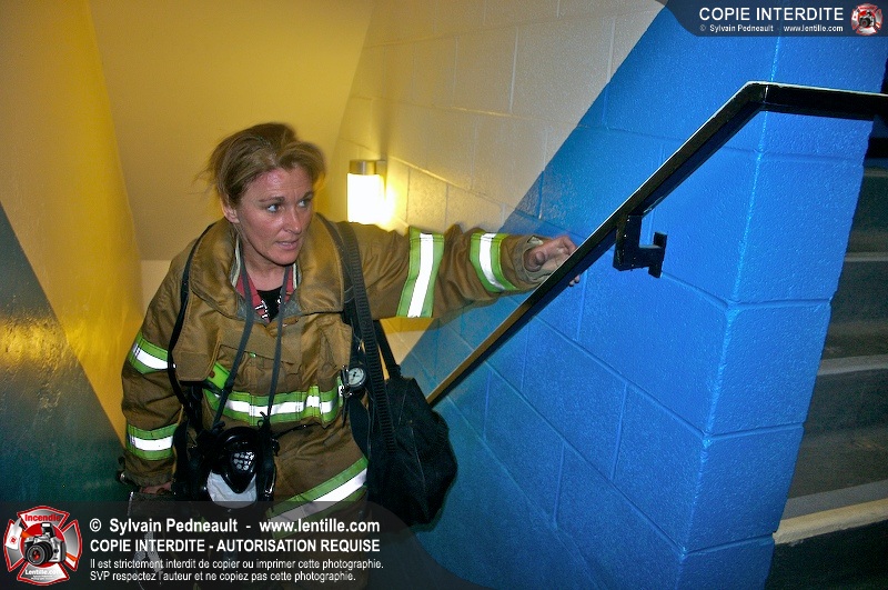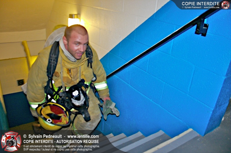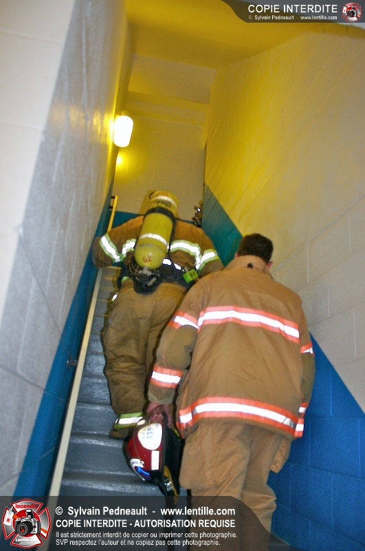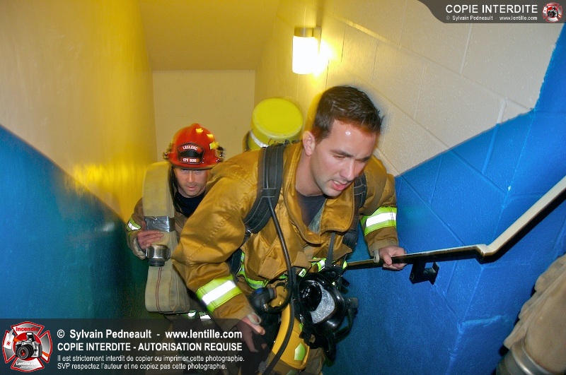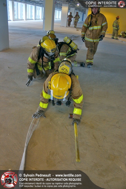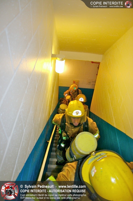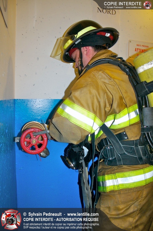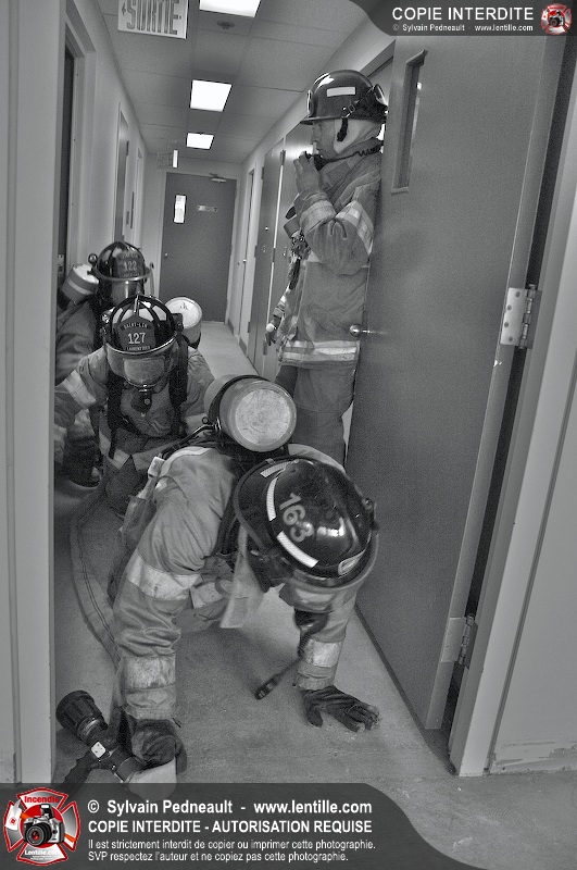 Une cinquantaine de pompiers de différents services incendie ont participé à Montréal à une simulation d'intervention de grande envergure en BGH, dans le cadre de leur évaluation finale pour le module 18.