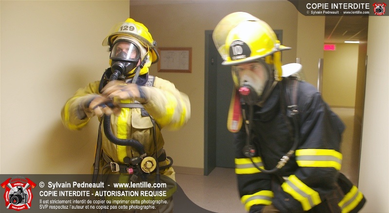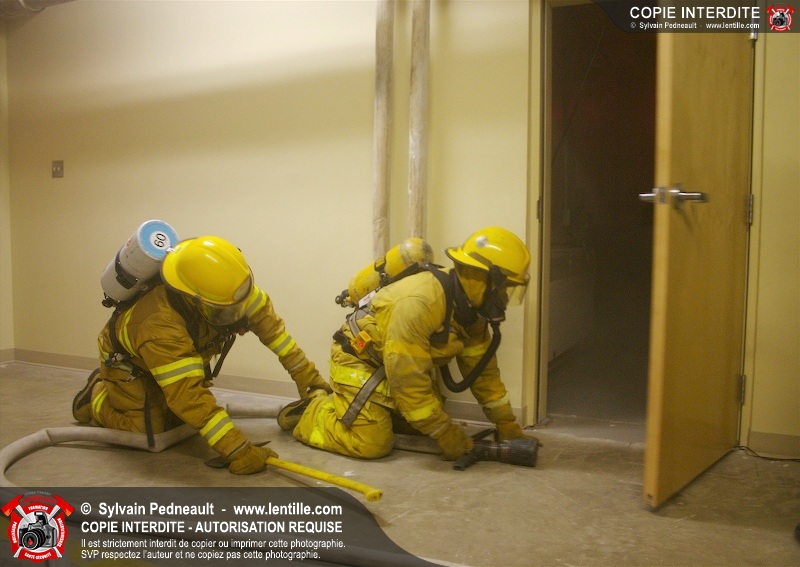 Des étudiants du programme Pompier I au CFR de Saint-Hyacinthe suivent leur formation de recherche & sauvetage.