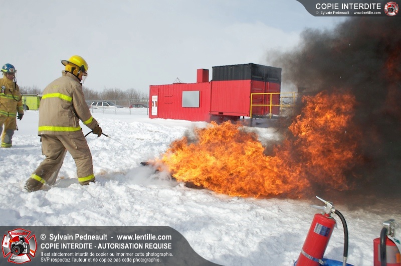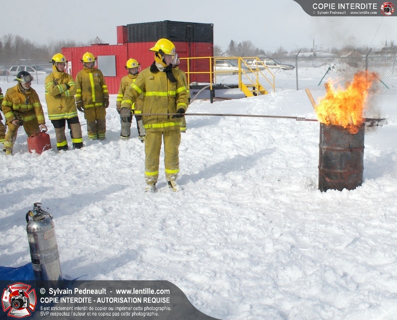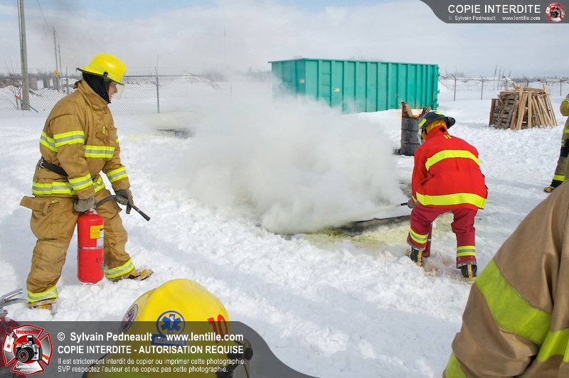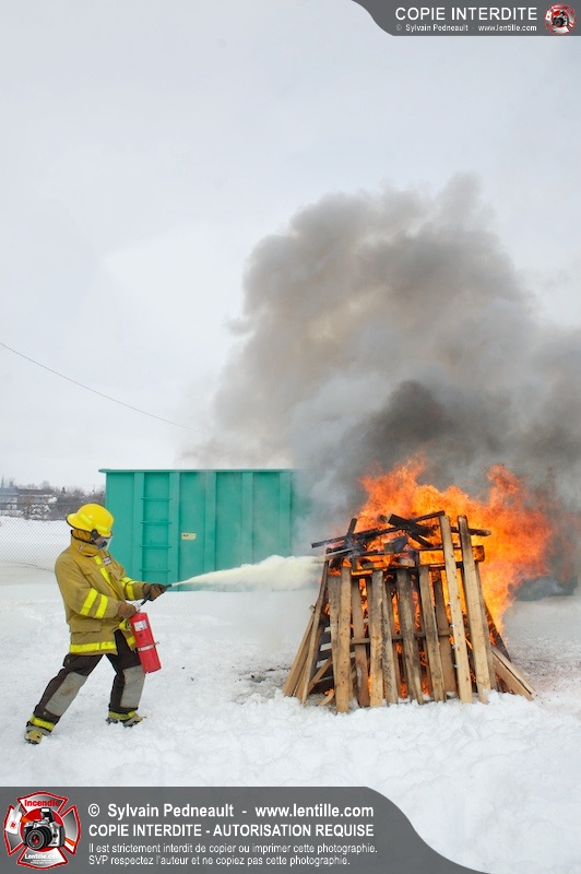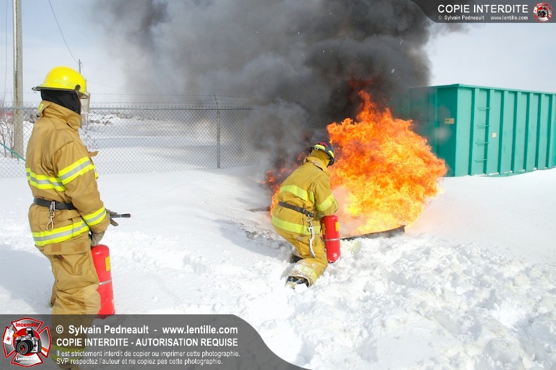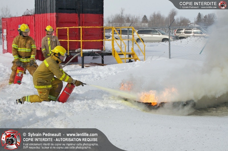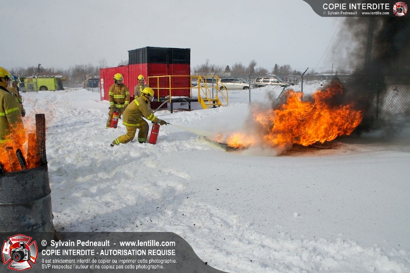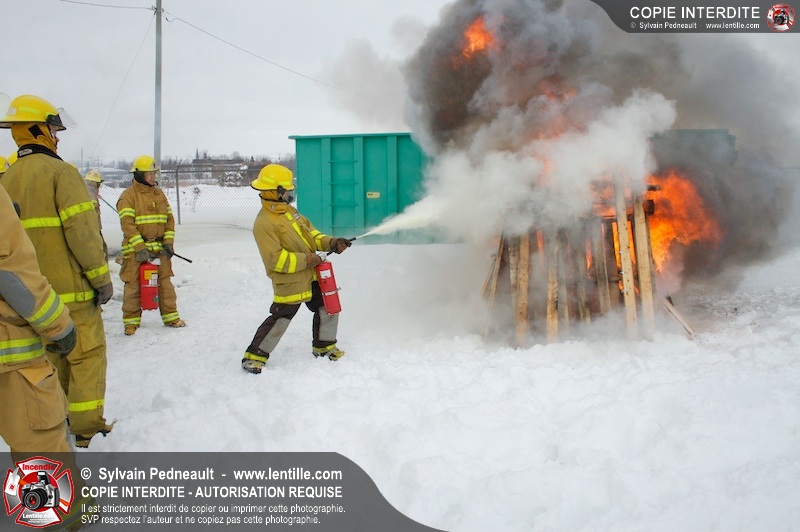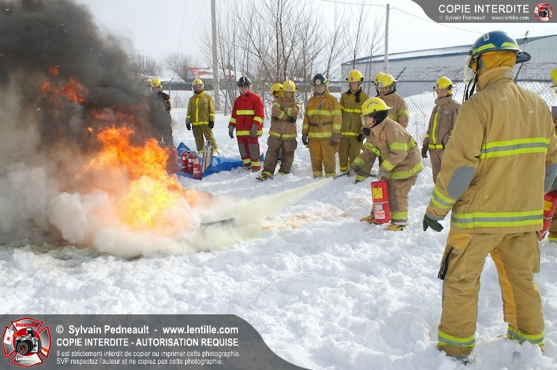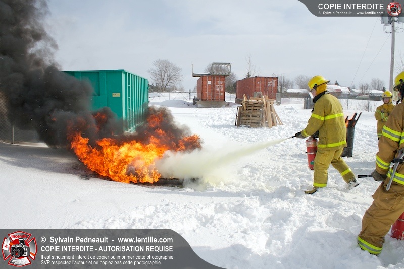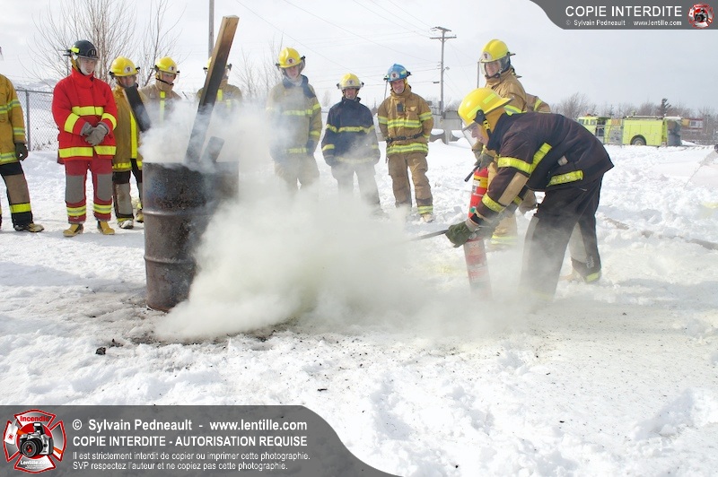 Le CFR de Saint-Hyacinthe a organisé une pratique d'extincteurs portatifs pour un groupe Pompier I. Les étudiants ont pu expérimenter avec les différents types d'extincteurs et se familiariser avec les effets sur différents types de feux.