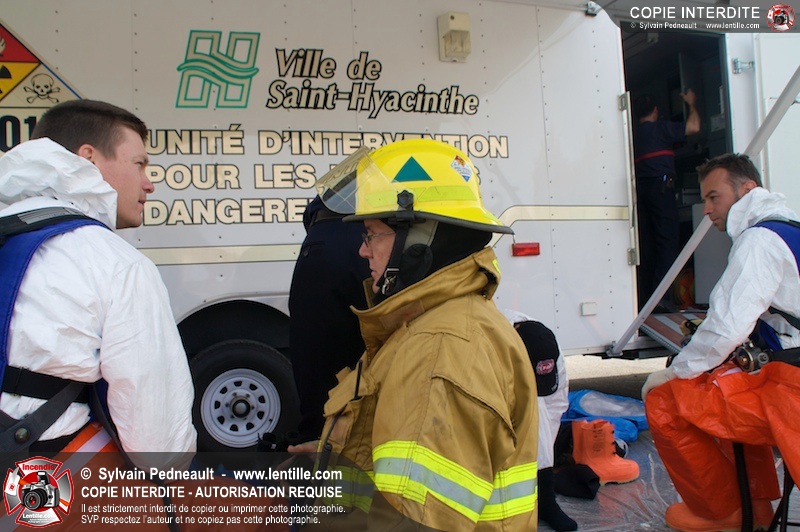 Les pompiers du Service de sécurité incendie de Saint-Hyacinthe et les paramédics de Saint-Hyacinthe ont participé à une simulation d'intervention impliquant des matières dangereuses.