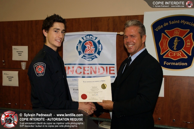Le CFR de Saint-Hyacinthe, en collaboration avec l'École Nationale des Pompiers du Québec, a organisé une remise de diplômes Pompier I, Pompier II et autres spécialités.